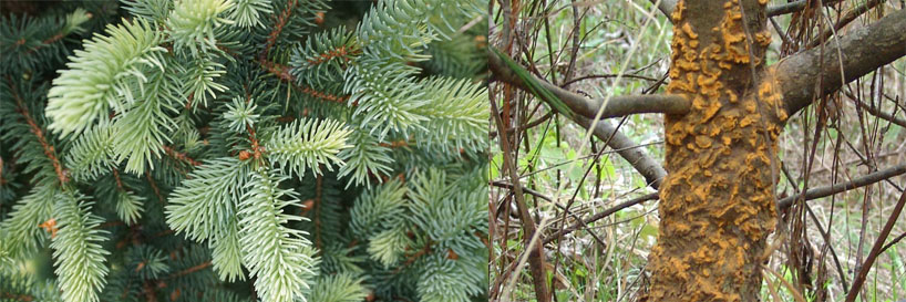 林木受害后局部枝條叢生有如鳥巢。見于多種針、闊葉樹種。