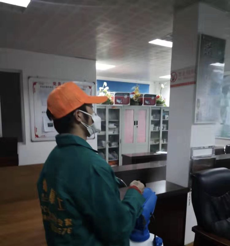 2月12日晚李紅梅主任協(xié)調好人員分工,由分管公衛(wèi)領導高燕同志帶隊部署消毒區(qū)域,辦公室主任林顯元同志現(xiàn)場監(jiān)督,康樂士的技術人員,根據(jù)現(xiàn)場的統(tǒng)籌安排,攜帶專業(yè)設備和藥液,進入消毒作業(yè)區(qū)域,認真細致的進行消毒作業(yè),各位領導的協(xié)調和指導,對康樂士的技術人員的消毒起了很大的幫助作用。康樂士的技術人員對每一個角落,每一片區(qū)域,都進行認真地消毒,真正的做到了,全方位,無死角。