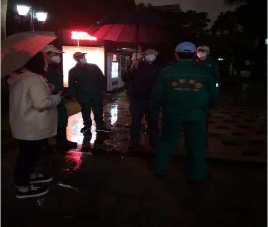 ▲林波副主任到地下車庫、電梯間等重點(diǎn)區(qū)域進(jìn)行消毒工作現(xiàn)場指導(dǎo)