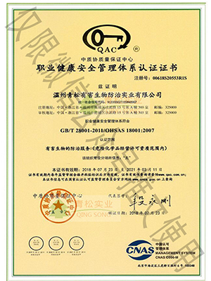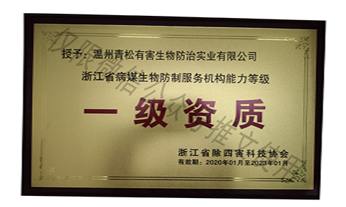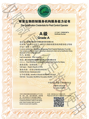 國(guó)家級(jí)有害生物防制認(rèn)證機(jī)構(gòu)A級(jí)證書(shū)/浙江省病媒生物防制服務(wù)機(jī)構(gòu)能力等級(jí)一級(jí)資質(zhì)